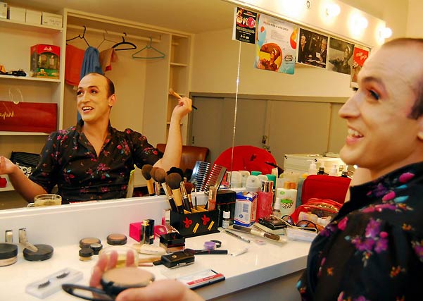 Durante uma hora, o ator fala e se comporta igualzinho a uma mulher. E não perde a mão, quer dizer o rebolado, quando dança funk no palco. Isso mesmo, além de ir e vir (mancando) no cenário contando as angústias da personagem, o ator sacode o esqueleto.